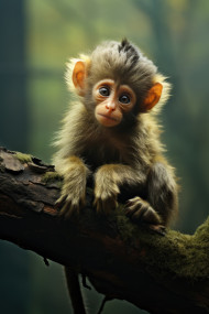 baby monkey branch forest nature wildlife adorable cute innocent explore surroundings wild animal wildlife day hyperrealistic hd curious world photo capture discovering sitting habitatImagine Buddy