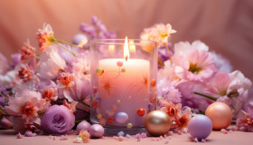 Decorative candle featuring easter eggs and flowers, easter candles concept
