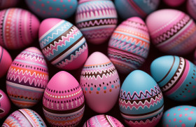 colorful easter eggs pattern pink background festive joyful celebration easter easter day celebrate hyperrealistic hd artistic holiday traditional pastel painted abstract decoration decorations colorful eggs seasonal ornamental vibrant cheerful spring bright eggs happy creative festive pattern designImagine Buddy