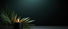 black candle palm branch dark background serene aesthetic palm sunday hyperrealistic hd calm home interior atmosphere still life decor tranquility decoration mindfulness relaxation space peaceful minimalismImagine Buddy
