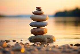 stacked pebble beach sunset shore serene balanced tranquil harmonious water world water day hyperrealistic hd natural dusk outdoor peaceful beauty coastal seashore coastal scene horizon scenic rocks landscape scenery seaside waterfront stones nature evening calm relaxationImagine Buddy