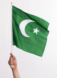 Woman hand holds pakistani flag, pakistan independence day photos