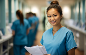 nurse scrubs document doctor medical healthcare hospital handing over paperwork file hyperrealistic hd uniform collaboration healthcare team professional white coat medical document clinic healthcare professionals patient care teamwork healthcare setting healthcare scene healthcare communication healthcare provider healthcare workplace information exchange medical staff communicationImagine Buddy