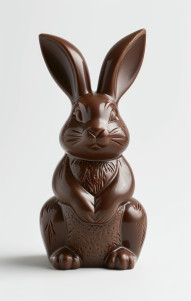 A chocolate rabbit against a clean white background, easter chocolates concept