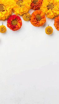 Beautiful marigold flowers in vibrant orange and yellow colors arranged on a white background, gudi padwa decoration picture