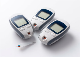 A close-up of a blood sugar monitor, diabetes concept