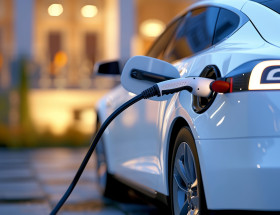 Electric car being charged promoting sustainable transportation, green transportation concept