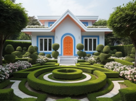 cottage green hedge garden house quaint charming home nature real estate downsizing hyperrealistic hd outdoors rural environment exterior plants serene architecture property residential surroundings scenic country foliage landscape tranquility dwelling peacefulImagine Buddy