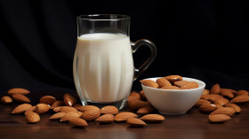 Almond milk in a glass with a splash, almond image
