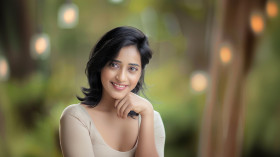 woman indian black hair smiling touching chin blurry background happy lifestyle glowing beauty asian treatment concept cheerful product natural cosmetic attractive wellness facial positive skincare portrait skin care healthy routineImagine Buddy