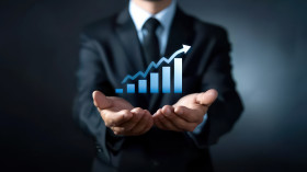 businessman holding growth graph icon sales performance improvement success concept office environment chart financial achievement professional man corporate strategy leader increase profit upward trend stock market investment finance analytics development planningImagine Buddy