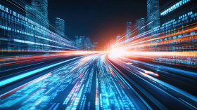 High speed digital highway with flowing data representing advanced speed technology