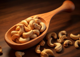 Cashew nuts in wooden spoon, cashew image