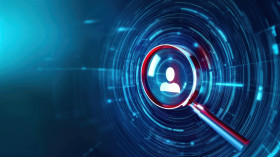 Magnifying glass focuses on human icon and data, highlighting ai recruitment, hiring automation and the integration of ai driven chatbots