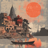 india iconic places ukiyoe art traditional landscape cultural heritage architecture temples landmarks scenic woodblock detailed nature vibrant beautiful famous sites indian cultureImagine Buddy