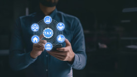 A person holds a phone displaying tax and financial icons, the image highlights tax services, digital tools, and financial planning