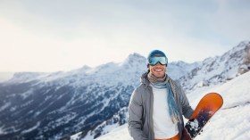 man goggles scarf snowboard action slopes ready winter snow outdoor mountain athletic fun leisure snowboarding skiing lifestyle thrill excitement cold activity extreme recreation snowcovered winter sports frozen adventure vacation frozen cool recreation thrill active skiingImagine Buddy
