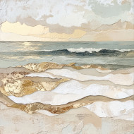 waves beach shore paper texture mixed media collage ocean sea sand water shoreline nature peaceful serene tranquil texture soft calming coastline summer vacation outdoor landscape environment sea foam layered abstract ocean waves artistic water art horizon coastal ocean view gentle relaxationImagine Buddy