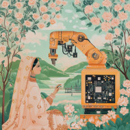 robotic arm assembling circuit board floral motifs patterns kangra painting kangra art kangra style technology robot precision futuristic machine automation engineering innovation tech science artificial digital electronics mechanism manufacturing robotics advanced robotic arm system assembly productivity futuristic tech digital artImagine Buddy