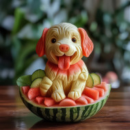 dog watermelon carved animal playful creativity nature concept art 3d concept artist detailed sculpture dog sculpture craftsmanship imaginative cute animal art dog lover carving pet art skill creative fun artistic pup carving artist playful dog concept design unique dog art imagination pet art carved dog adorable designImagine Buddy