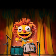 muppet puppet muppet style custom muppet style puppet muppet style puppet lion goofy wild eyes excited plays drums striking enthusiasm playful expressive face musician fun furry colorful performance beat percussion rhythm joy entertainment stage energy vibrant creative comedy character silly animatedImagine Buddy