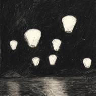 lanterns night sky floating illuminated wireframe drawing pencil sketch peaceful light glow tranquility sky stars tradition calm illumination serenity festive minimalism air glowing floating lanterns celebration wireframe art sketching scene night concept paper bright light up night glow peaceful night symbolismImagine Buddy