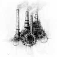 factory smokestacks gears industrial wireframe drawing pencil sketch machinery manufacturing production building factory setting structure design modern mechanical outline industry metal power technology gears turning industry concept blueprint factory sketch work machine factory line lineart engineering operation minimalism factory work industrial landscapeImagine Buddy