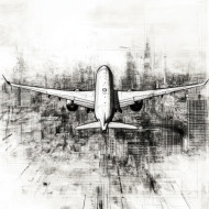 airplane flying city cityscape aerial view wireframe drawing pencil sketch plane flight skyline buildings travel transportation sketching sketchwork minimalist sky modern illustration movement air high-altitude urban perspective wing view concept aerial view aerial perspective clean sketch aviation outlineImagine Buddy