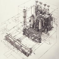 technical drawing quantum computer layout circuits cooling systems processors intricate mechanical industrial blueprint engineering advanced chip electronic hardware computing structure network technology schematic high-tech precision digital data artificial intelligence connectivity motherboard futuristic visualization drafting structureImagine Buddy