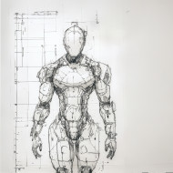 technical drawing biomechanical exosuit sketch hydraulics sensors support structure advanced mechanical industrial blueprint engineering robotics futuristic augmentation design technology cybernetic schematic mobility automation control electronics artificial intelligence high-tech visualization assembly concept precision drafting cyberImagine Buddy