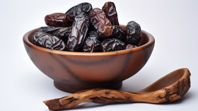 A bowl filled with some sweet dates are sitting on a white background, sweet dates image