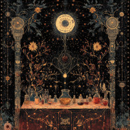 herbalist potions mixing glass bottles herbs ancient books mystical detailed scene tapestry custom wall art magical alchemy enchanted knowledge wisdom old spell research fantasy traditional nature potion artistic antique study mysterious classic rustic historical vintage elaborateImagine Buddy