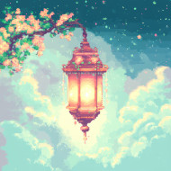 lantern glowing floating sky warm magical light darkness bright night peaceful flying evening golden festival illumination shine digital illustration pixel pixelated retro pixilart draw artwork vintage skyward celebration lanterns peaceful glow artistic aesthetic spark warmth dreamyImagine Buddy