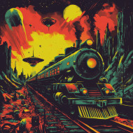 train speeding racing unknown smoke billowing wheels screeching darkness mystery adventure motion intense fast thrilling journey locomotive dramatic danger tunnel rush escape iron transit travel expedition nocturnal rail velocity peril destination pulp fiction artwork illustrationImagine Buddy