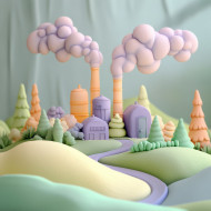 factory tiny puffy smoke clouds rising chimneys industry production manufacturing power steam workplace industrial process economy labor automation mechanical machines energy engineering construction business plant factory plasticine argos action handmade clay creative sculpture modelImagine Buddy