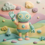 robot small waving hello friendly expression metallic futuristic charm technology innovation cyber ai artificial intelligence humanoid sci-fi greeting communication machine automation modern android robotic smile digital plasticine argos action handmade clay sculpture artistic creativeImagine Buddy