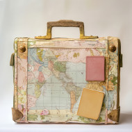 suitcase vintage passport map travel adventure papier mache paper pulp wanderlust sculpted handmade artistic nostalgic world tourism vacation exploration destination global journey luggage historic voyage exploration textured trip realistic traveler collectible handcrafted artistic souvenir authentic adventure sculpturalImagine Buddy