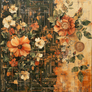 circuit board layered decoupage tech motifs paper collage technology handcrafted artistic furniture creative decor handmade design intricate futuristic digital detailed innovation electronics pattern decorative inspiration stylish ornamental blueprint modern concept aesthetic unique high-tech papercraftImagine Buddy