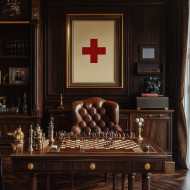Doctor in a white coat with a red cross sign, healthcare and medical emergency theme, great for board game, monopoly, best board games concepts