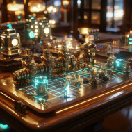 robot futuristic city neon lights metropolis technology innovation sci-fi artificial intelligence modern high-tech cyber digital skyline advanced urban progress automation bright cyberpunk infrastructure night network smart visionary development innovation board game monopoly best gamesImagine Buddy