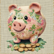 piggy bank cross stitched embroidery pattern counted coins savings financial growth money wealth symbol creative unique handmade textile needlework economy banking prosperity treasure investment business golden stitching artistic detailed vintage thread fabric financial economyImagine Buddy