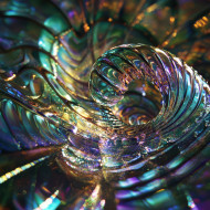 carnival glass gears reflecting bright hues intricate metallic shimmering iridescent collectible vase acorn steampunk decor glowing elegant artistic display antique rare craftsmanship luminous exquisite sculpture statement beauty vintage detailed ornamental radiant accent luxury industrial mechanical uniqueImagine Buddy