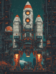 giant robotic arms assemble rockets high tech factory sparks futuristic machinery builds space vessels atompunk industrial cyber sci fi digital automation cyber factory advanced modern high speed technology innovation spacecraft cyber engineering retro futuristic atompunk clothes atompunk poster chrome assembly line powerful cyber production manufacturingImagine Buddy