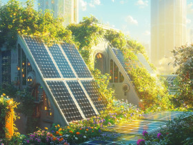 solar panel rooftop gardens greenery renewable energy urban farming solarpunk aesthetic movement sustainability eco future technology nature green architecture power photovoltaic modern vegetation city environment innovation rooftop garden solar agriculture clean development design futuristic harmony ecological self sufficientImagine Buddy