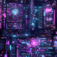 Galactic stock exchange with holographic star charts tracks cosmic trade, a high tech astropunk financial hub where interplanetary commerce shapes the future of space economies