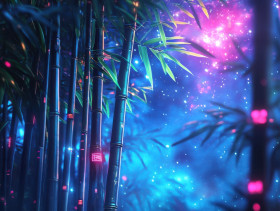 Windswept bamboo stalks in ikebana composition, tall and graceful, ikebana vases with ikebana kenzan securing stems, minimalistic japanese botanical art concept