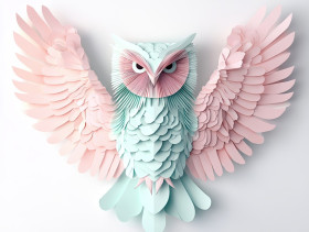 An owl with intricate cut out feather details, crafted in kirigami, the 3d kirigami layers enhance realism, making it perfect for wildlife and flower kirigami inspired artwork