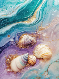ocean waves resin embedded shells sea beauty swirling blue hues natural elements stunning craft decor painting inspiration preserved transparent marine artistic handmade coastal aesthetic detailed glossy fluid organic home collectible seaside elegant relaxation decorative beachImagine Buddy