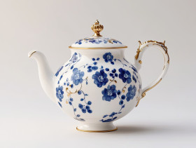 cibulak porcelain teapot grapes floral motifs fine craftsmanship warmth hospitality tea culture intricate elegant artistic detailed classic vintage soft blue ceramic traditional delicate drink ornate botanical timeless beautiful harmony crafted relaxing refined symbolic tableware decorative heritage exquisiteImagine Buddy