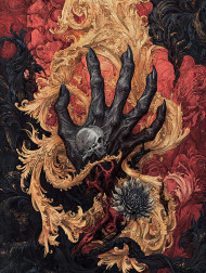 Twisted hands weave into endless knots, forming a grotesque tapestry of tangled limbs, trapped in an eternal struggle, eerie and unsettling in design